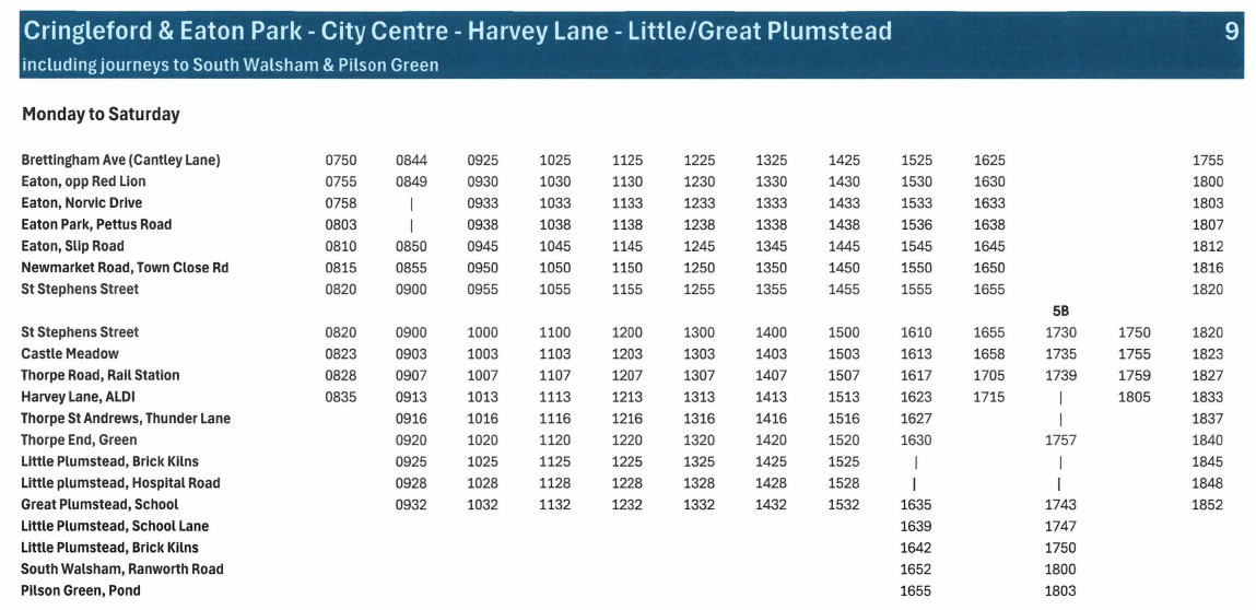 -The service operates through to Eaton and Cringleford and uses Newmarket Road, useful for pupils attending schools or colleges in Norwich.