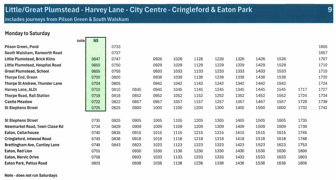 -Mousehold to City centre: The frequency and route remains the same. The service no longer travels through to South Norwich.